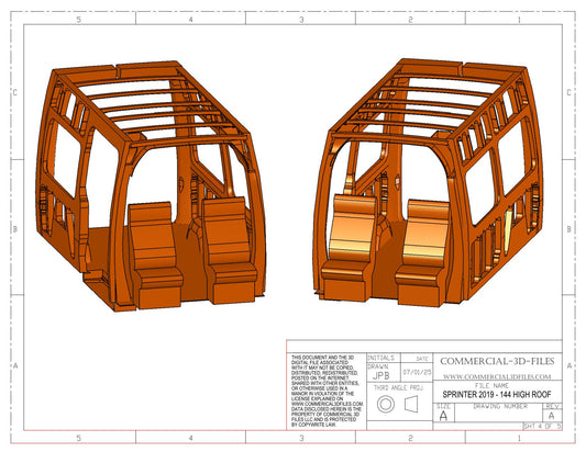 3D Solid Model – 144" High Roof 2019 Mercedes Sprinter Van | Fully Parametric CAD Model for Van Conversion Design (Not STL or Mesh)