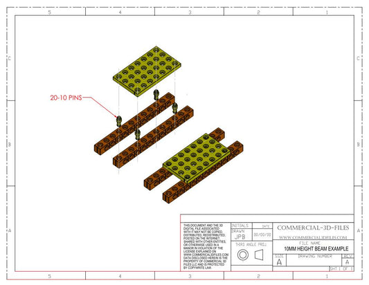 GEARBLOCS BEAM 20mmX10mm in LENGTHS FROM 20MM TO 300MM - B-R-V-W20-H10-L20-300-BR12MM-x15