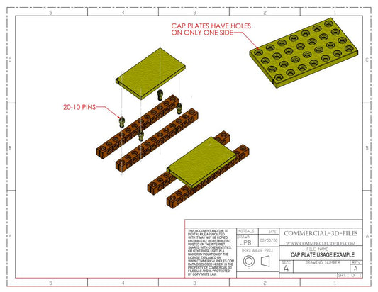 GEARBLOCS CAP PLATE 20mmX10mm in LENGTHS FROM 20MM TO 300MM - CP-R-V-W20-H10-L20-300-BR12MM-x15