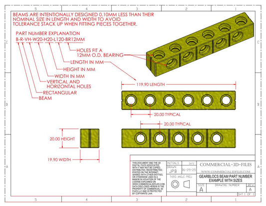 GEARBLOCS STANDARD BEAM 20mmX20mm in LENGTHS FROM 30MM TO 120MM - B-R-VH-W20-H20-L30-120-BR12MM